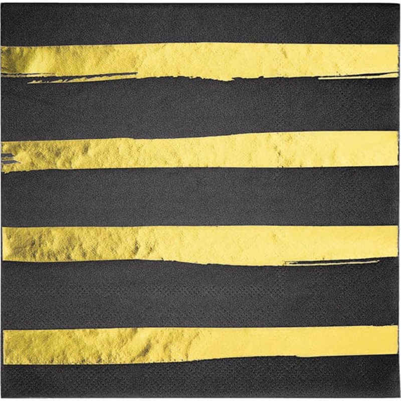 VK35440247Classic Black Gold Stripe Luncheon Napkins 16ct