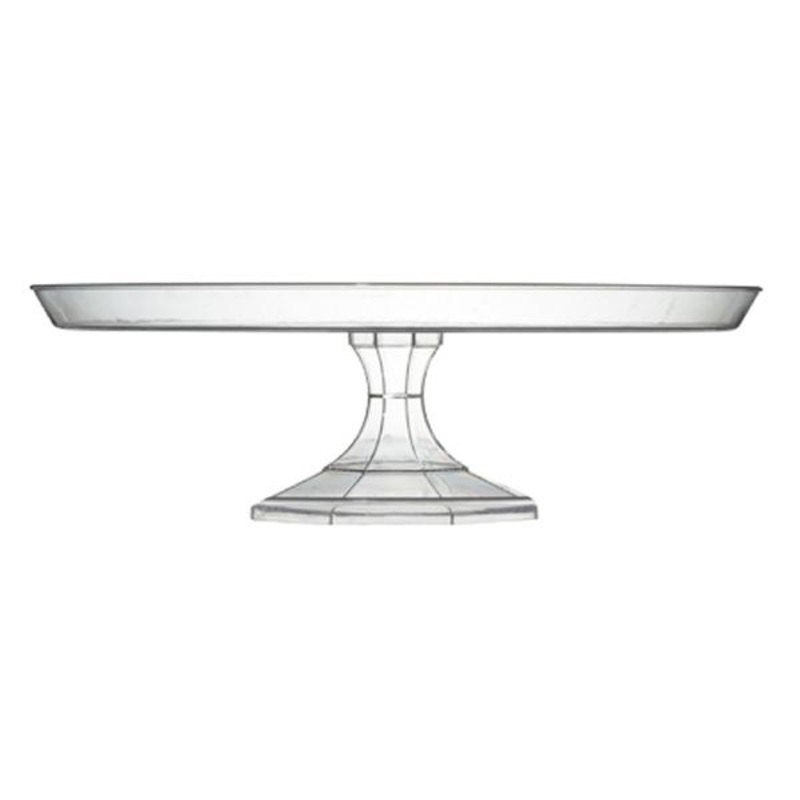 This Clear Cake Stand for various occasions keeps baked goods on clear display above the rest of the table One Clear Cake Stand measuring 13.75 inches in diameter per package