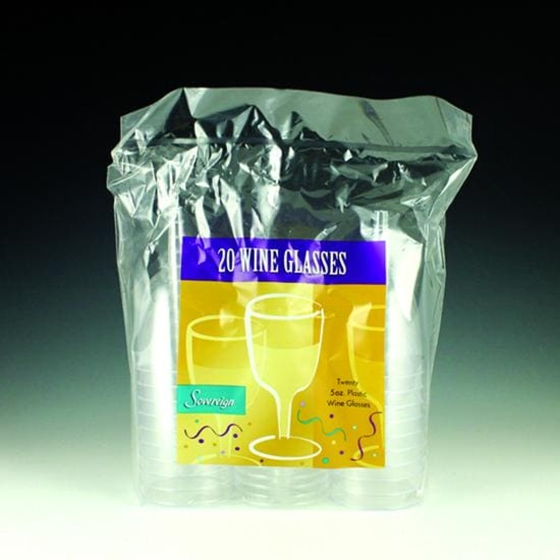 Our Clear Plastic wine glasses are strong and durable and sure to suit your serving needs These disposable 2piece clear plastic wine glasses are perfect for Holiday gathering New Years Party or any special occasion Each package includes 20 clear plastic wine glasses each with a 5oz capacity
