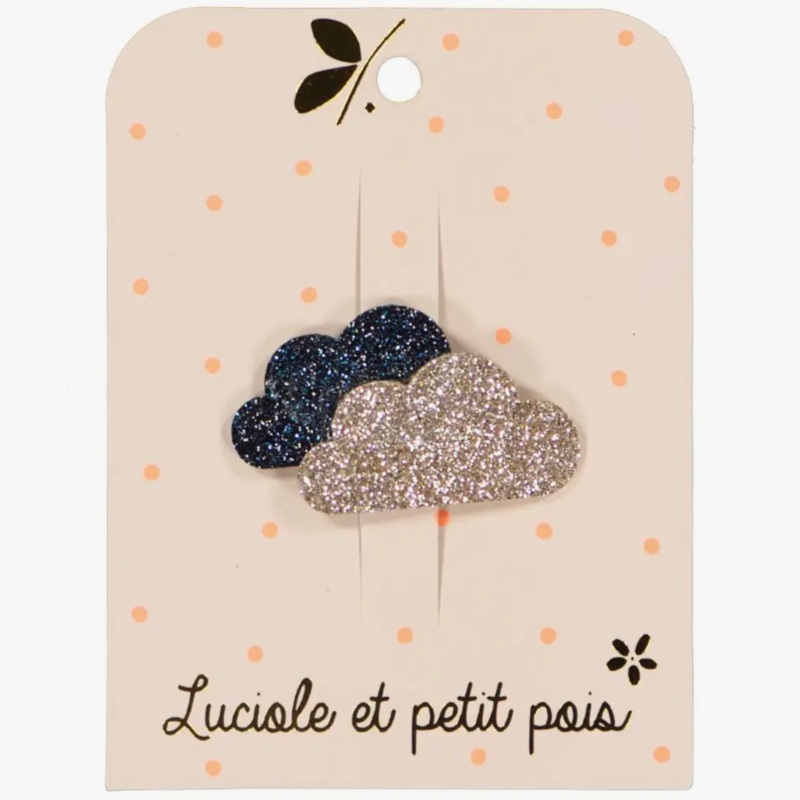 These fluffy and glittery clouds are perfect for a day with blue skies! An adorable hair clip for any sparkle lover.