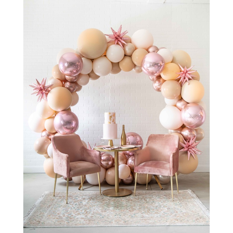 Set includes:circular frame with balloon garland.Rental: Includes install and tear down.Inflated with air - this item will not float.Handcrafted piece. May vary from picture.FeaturesThisset includes:-8x8 Circular Gold Frame-Balloon GarlandMake this a celeb