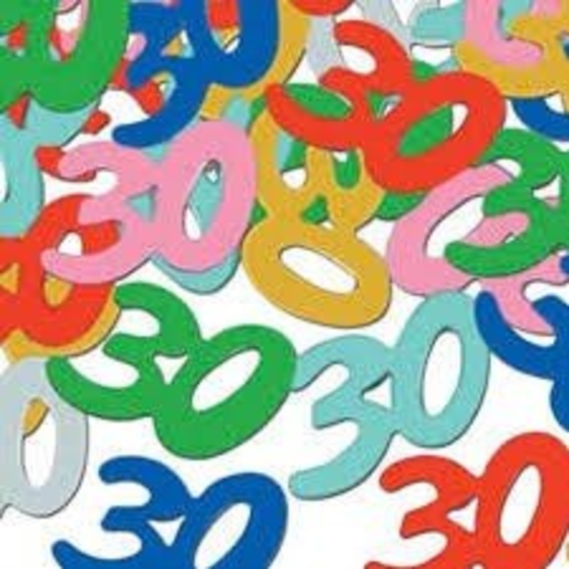 Clbrez votre anniversaire en style avec ce paquet de 1oz de confettis mtalliques multicolore en forme de 30. Ces confettis multicolores sont une faon originale et amusante de surprendre vos invits. Faites la fte et profitez de lexprience!