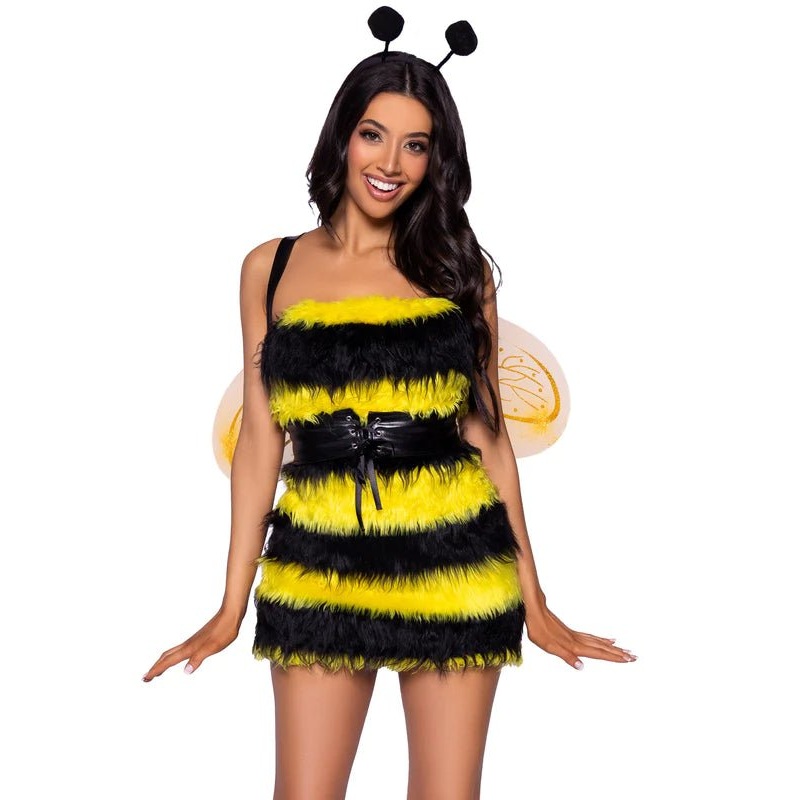 Faites l'abeille autour de la ruche lorsque vous arrivez dans le costume ultra-mignon de Bizzy de Leg Avenue. Le costume comprend 3 pices- une mini-robe raye fourrure, un harnais d'aile serre-taille et un adorable bandeau d'antennes. Ce costume d'Halloween