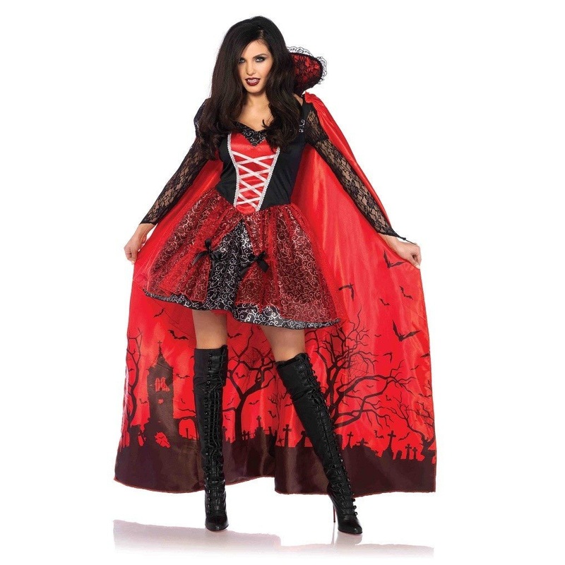 Qu’elle tentation inoue! Transformez-vous en Tentatrice Vampire et subjuguez toute la fte avec ce costume compos d’une superbe robe courte et d’une cape lgre et lance ! Vive Halloween !