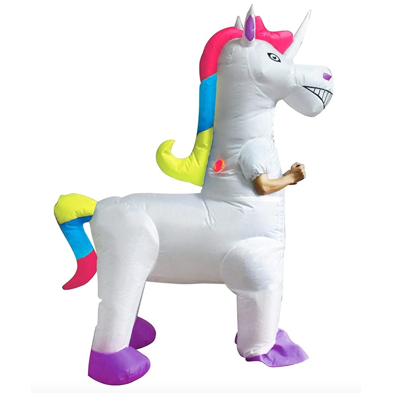 Ce costume gonflable exceptionnel est le cadeau idal pour les enfants qui rvent dincarner une licorne. Son design blanc et multicolore est frais et color, et ses quatre pattes donnent votre enfant l'impression d'tre une vraie licorne. Les couches extrieure