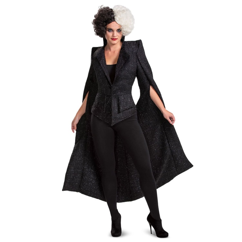 Add a bit of luxury to a couture quality adult costume. Our Cruella Live Action Adult Costume is detailed with woven silver and sparkling polyester to give it the look of your favorite wool designer jacket. Wear this show stopping costume to your favorite