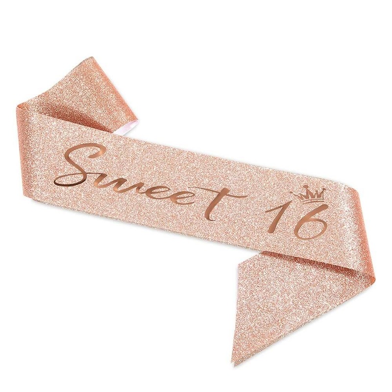 Rose Gold Glitter 'Sweet 16' Birthday Party Sash - Sixteenth Birthday Party Decorations and Birthday OutfitsGet ready to add some extra sparkle and style to your Sweet 16 celebration with our beautiful Deluxe Rose Gold Glitter 'Sweet 16' Sash with Little C