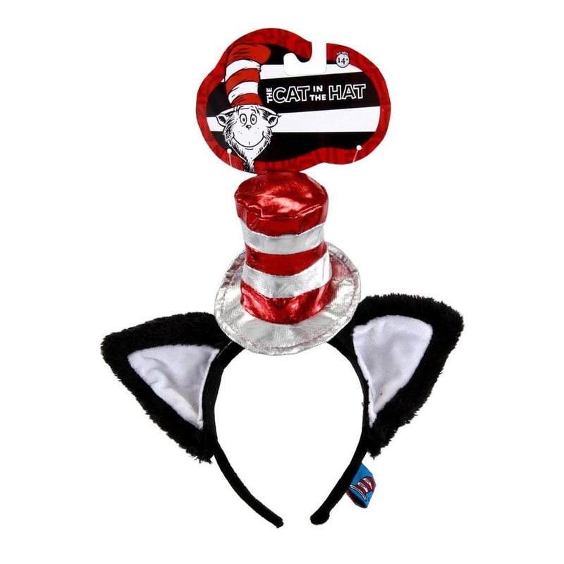 Our Deluxe Cat in the Hat Headband is fine and grand and fits around your head like a glove to a hand It has red and white stripes on the iconic hat gear which is attached to a headpiece with Cat in the Hatlike ears Wear it for Dr Seuss Day Halloween or fo