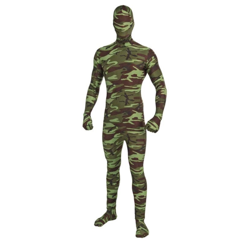 Jump into action with our Disappearing Camouflage Boy costume Suit that will be a hit at any Halloween party Everyone will rave about this Disappearing Camo Boy costume which is the perfect costume for any Halloween event The Disappearing Camo Boy costume suit includes hooded mask jumpsuit with attached gloves amp socks that allow you to see breathe and drink with ease Additional disappearing style Boy Teen and adult Costumes and accessories are available and sold separately