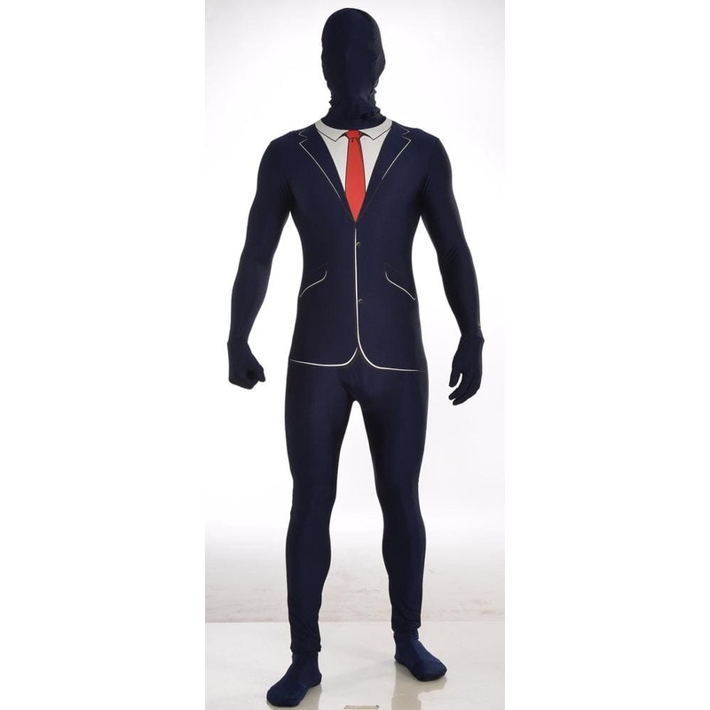 Jump into action with our Disappearing Man Business Suit Adult costume that will be a hit at any Halloween party Everyone will rave about this Disappearing Man Business Suit costume which is the perfect costume for any Halloween event The Disappearing Man Business Suit allows you to see breathe and drink with ease and includes hooded mask jumpsuit with attached gloves and socks Additional disappearing style adult Costumes and accessories are available and sold separately