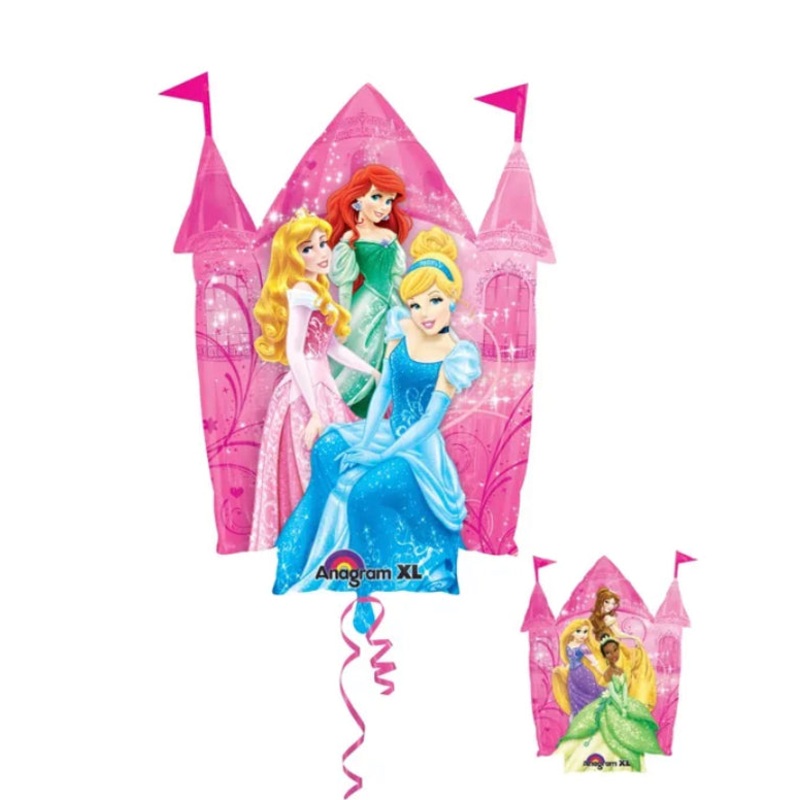 1 Jumbo Disney Princess castle foil balloon.Measures 66cm x 88cm.Any princess would just love to see this balloon floating around at their birthday party!Balloon has a different picture on each side (photos shows both sides of the same balloon).sold flat