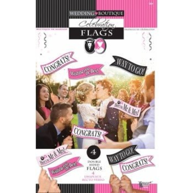 Trouvez la romance dans les quatre merveilleux drapeaux avec cet ensemble de mariage! Avec deux faces impressionnes (doux et lgant), ces drapeaux sont parfaits pour complter n’importe quelle dcoration de mariage et faire de ce jour spcial un moment dont vous vous souviendrez jamais! Profitez-en pour dire “Je le veux” !