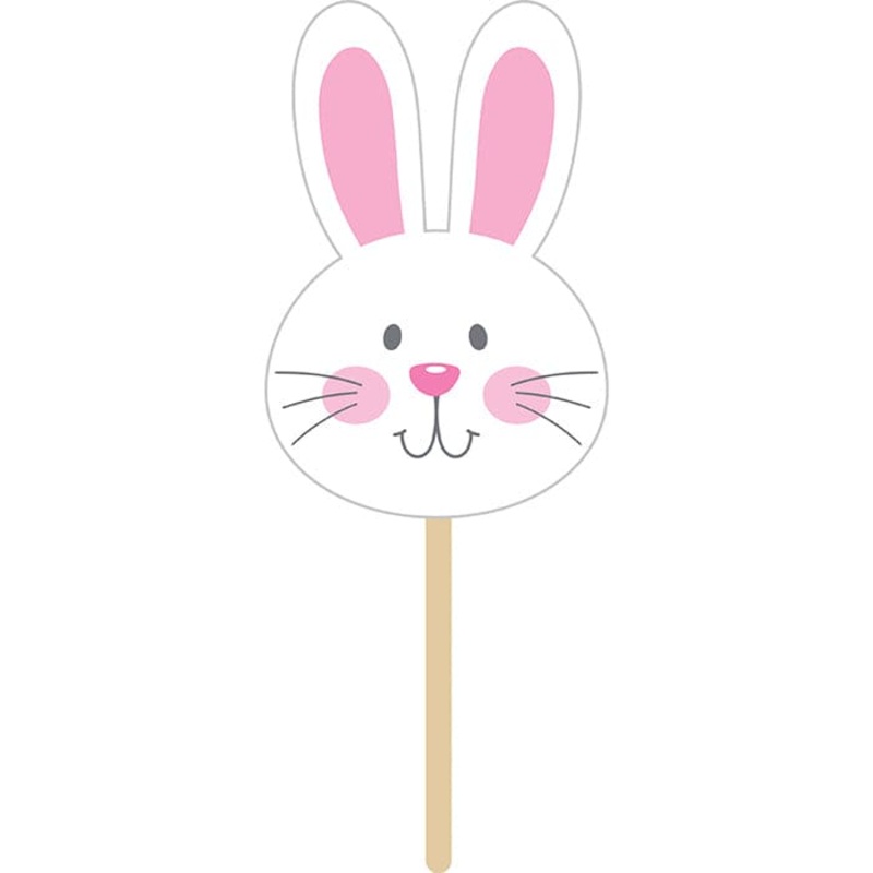 Make your cupcakes and other sweet treats festive for Easter with these cute picks that feature white bunny head with pink ears and cheeks. Includes 50 picks that measure 4.25in x 1.65in.