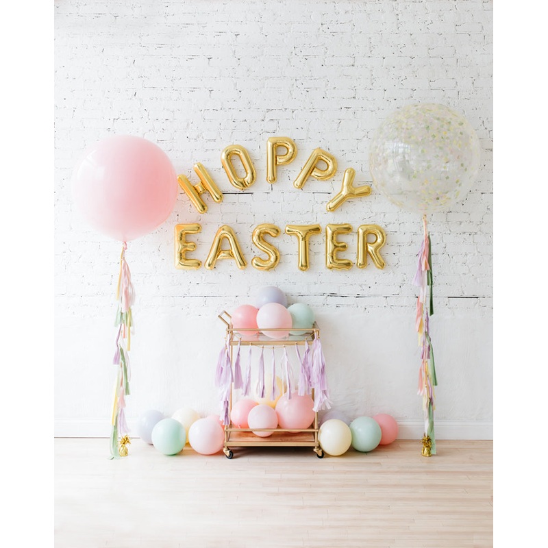 Make this the hoppiest and happiest Easter yet, with this adorable balloon set! With two giant balloons, floor balloons and a Hoppy Easter message, this is perfect for photos or your Easter sweets table!