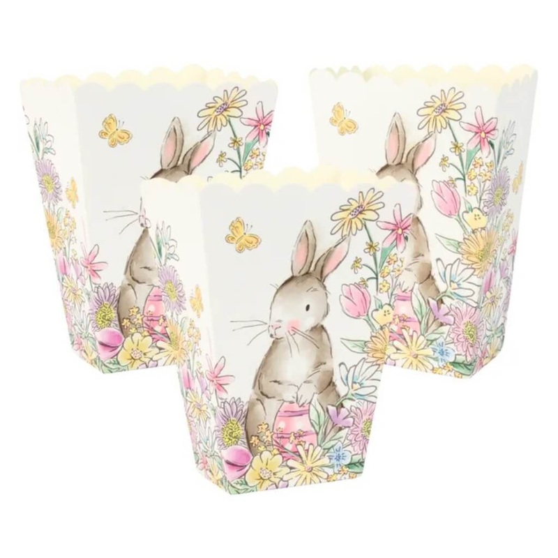 Pack of 6 Easter Whimsy Treat Boxes.Make your Easter celebrations extra special with these adorable Easter Whimsy Mini Treat Boxes! Featuring a charming bunny rabbit and floral design, these pastel-coloured party boxes are perfect for holding small chocola