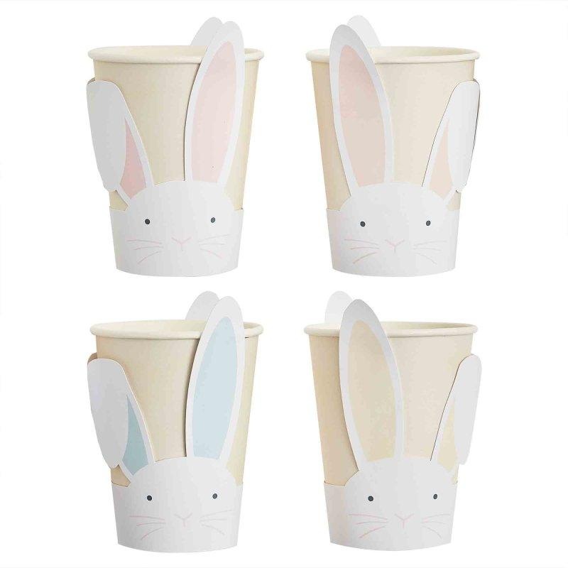 Bunny paper cups with pastel pink, peach, blue & yellow ears.Pack of 8Size: 250ml