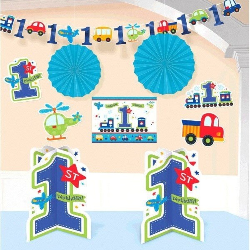 Cet ensemble de dcorations de 1e anniversaire contient:1 bannire2 ventail suspendus5 dcoupages2 centre de table.