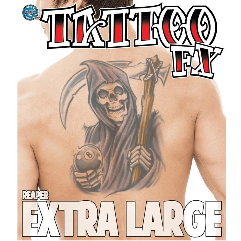Prparez-vous tre bloui par ce tatouage extra-large de la faucheuse ! Avec des couleurs vives et intenses, ce design audacieux vous donnera l'impression d'tre vtu de magie et vous ravira les sens. Resplendissez de l'extrieur et de l'intrieur !