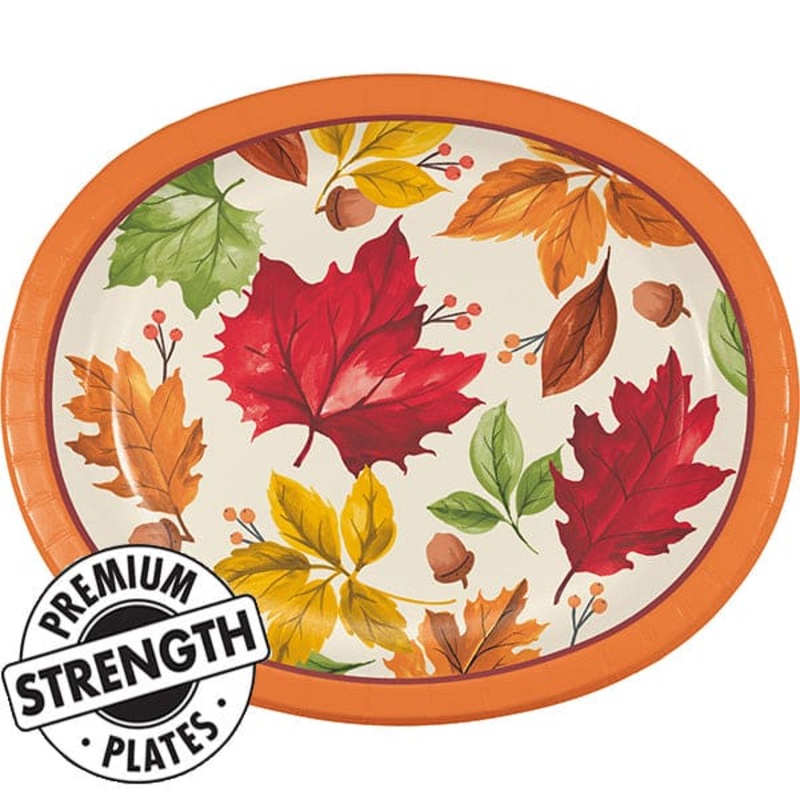VK35443320Fall Leaves 10in x 12in Oval Paper Platters 8 Ct