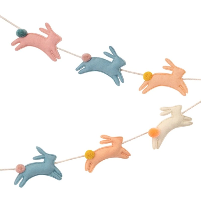 Make your Easter, or springtime, party look amazing with this gorgeous garland. It features 8 padded marl felt bunnies in pastel colors. Simply hang it up for a fabulous decoration you and your guests will adore. It comes packed in a delightful cotton orga