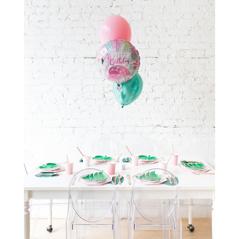 Flamingo Fling – Happy Birthday Foil and 11in Balloons Centerpiece – bouquet of 3