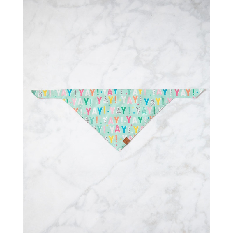 Celebrate birthdays and gotcha days in style. Part of TheFoggyDog’sbrand Birthday Collection designed by artist Cassidy Demkov,this Yay! bandana is reversible soit can still be worn after the last candle is blown out.