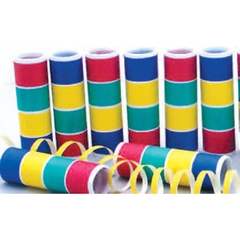 Serpentine throws are great for New Year's Parties, Birthday Parties and other fun occasions. They are fun to throw and they make decorating and entertaining easy. One four-color roll has 20 serpentine throws. Flame resistant and made in USA. One roll with