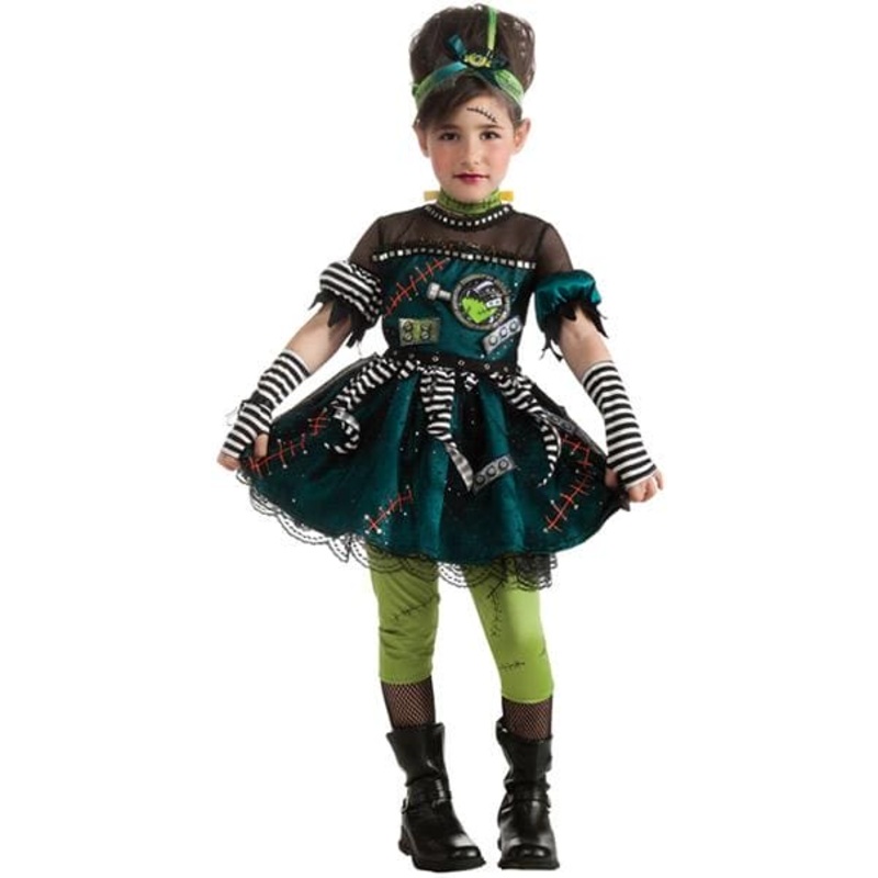 Frankie's Princess Girls Costume features a cute dress with multi pattern detail a vibrant pair of green leggings fingerless gloves choker and headband Wig and boots not included.