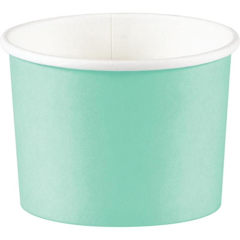 These Fresh Mint Green 8 oz Treat Cups are the perfect way to serve snacks, ice cream, fruit, and more at your next event. Each cup measures 2.5" x 3.5" and is made from sturdy boardstock. The mint green hue will complement many party themes and events. Wi