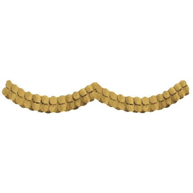 Garlands are fun way to add color to any decoration scene. This gold color paper garland measures 12 feet long and comes one per package.