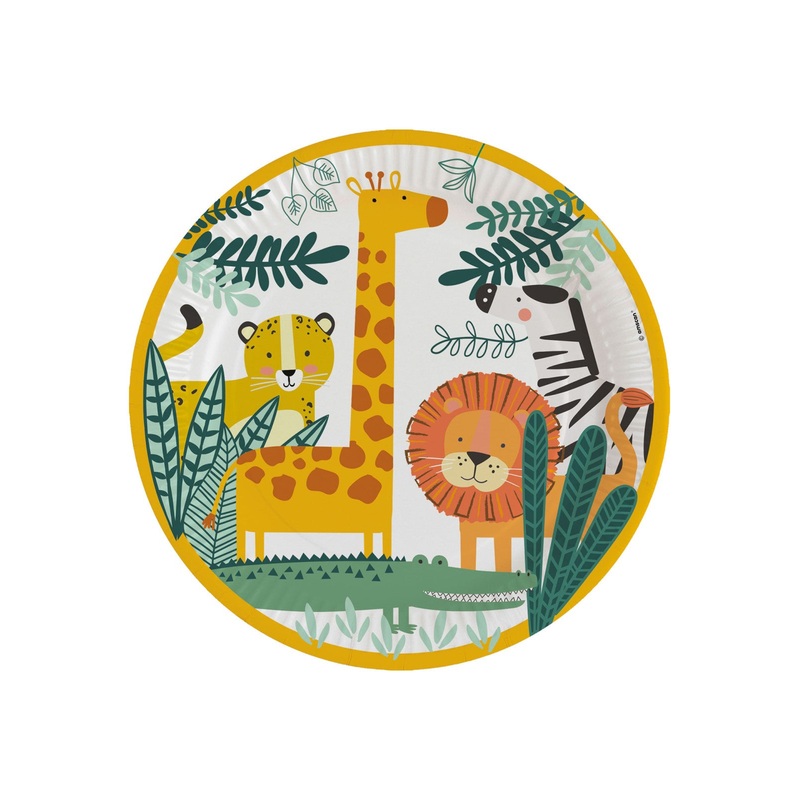 Pack of 8 jungle themed party plates measuring 23 cm in diameter.