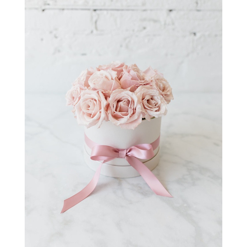 Fresh Floral/Greenery. This item is Ready-To-Party.FeaturesSend a romantic gift of fresh florals with our beautiful rose bloom box.DetailsColor Palette:Florals - pale pinkFloral box - dusty pinkFloral Type: RosesDimensions:H - approx. 7inW - approx. 4" (sw