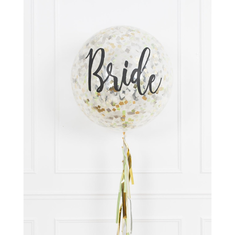 This glam confetti giant balloon is perfect for a themed shower. This helium-filled giant balloon is filled with matching confetti and finished with matching tassel.