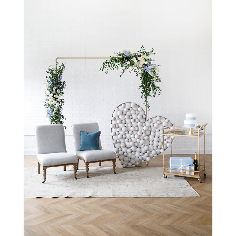Decorate your celebration of love with this inspired set. With our signature gold frame, adorned in florals and a mosaic balloon heart, you’ll have a photo worthy moment on your big day.