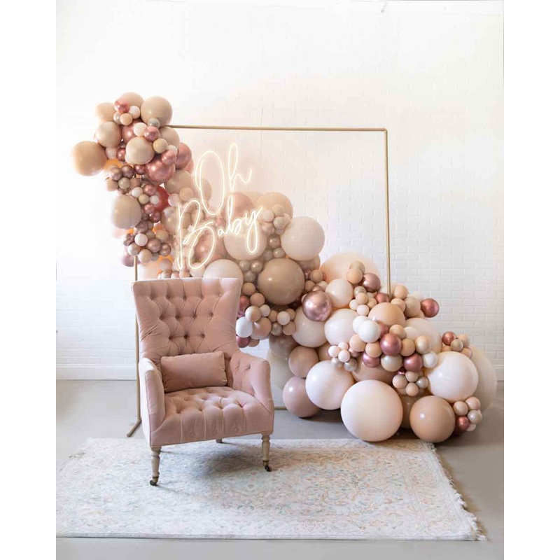 Set includes: frame with balloon garland and neon.Rental: Includes install and tear down.Inflated with air - this item will not float.Handcrafted piece. May vary from picture.FeaturesThisset includes:-7x7 Gold Frame-Balloon Garland-Oh Baby NeonLight up you