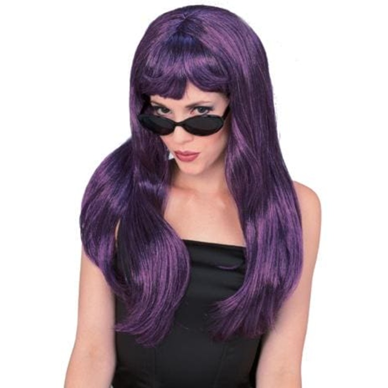 Our Blue Glamour Adult Wig will add style to any costume The Blue Glamour is made of 100 synthetic fiber do NOT use styling tools with heating element Wig cap is recommended sold separately it improves wig fit for better style and comfort The Purple glamour long hair wig comes in one size which fits most teens and adults