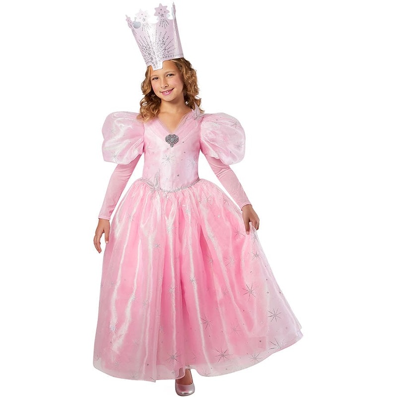 Dress up as magical Glinda, the Good Witch from The Wizard of Oz and Help Dorothy return to Kansas from the Land of Oz. This Wizard of Oz Glinda Costume is the perfect costume for any Halloween event or everyday dress-up play! The costume includes a sparkling pink dress with Butterfly and a Brooch accent and a crown made of soft material. Shoes and a wand are not included.