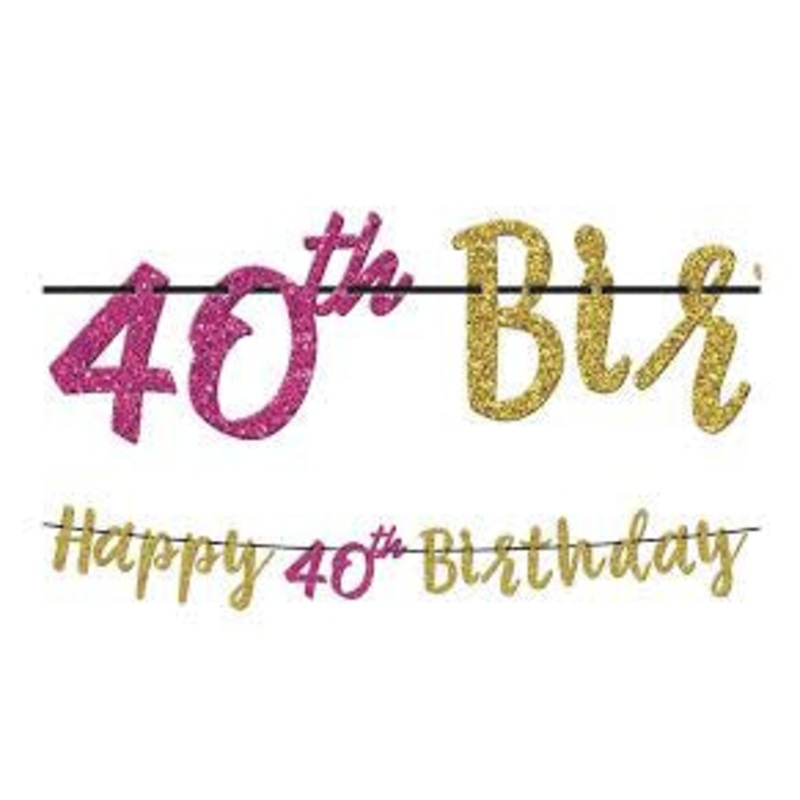 Glitter 40thBirthday Letter Banner - Pink/GoldMake your big day really shine with a Glitter Pink and Gold 40thBirthday Letter Banner! This banner features cardstock letters that spell out "Happy 40thBirthday" and are covered in shimmering glitter.Cardboard