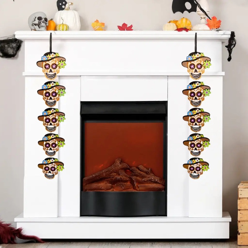 Glitter Cinco De Mayo Skull Door Hanging Ornament - Happy Halloween Home Decor and Halloween Birthday Party Decorations.Get ready to elevate your celebration with the dazzling Glitter Cinco De Mayo Skull Door Hanging Ornament! Made from durable plywood and