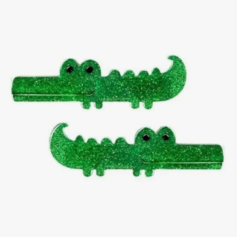 This pair of glitter gators are perfect for any animal lover! The glitter is encased in acrylic, so no glitter fall out!2 alligator clips100% water resistant and acrylicHandmade in Brazil