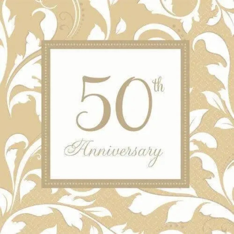 Elevate your 50th Anniversary celebration with the Gold Elegant Scroll Lunch Napkins. This exquisite set of 16 napkins features a stunning gold scroll design that adds a touch of sophistication to your special day. Perfect for commemorating such a remarkab