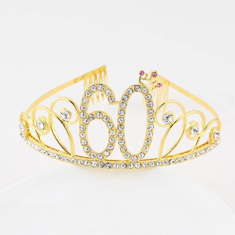 Premium Quality Gold Metal Rhinestone 60th Birthday Crown Tiara – 60th Birthday Party Decorations.