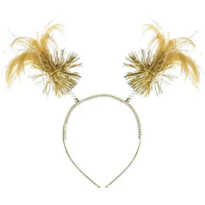 GoldPonytail Headbopper Headband with Tinsel. Headband with bopping pigtails.One size fits mostSuits kids, teens and adults (small head)Not recommended for children under 3 yearsMakes a great costume accessory for your dress-up partyHave some head-bopping