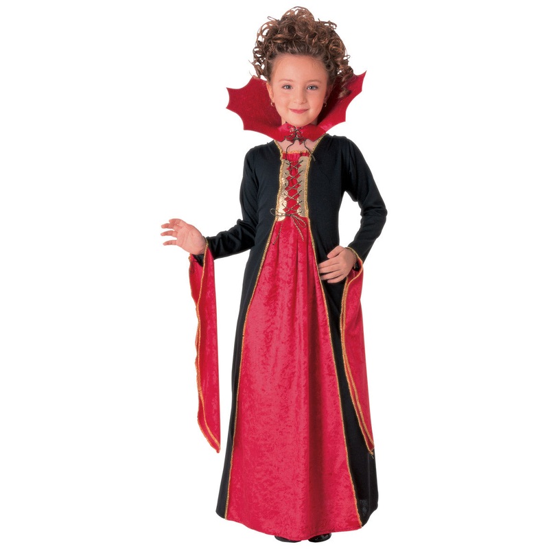 Includes long red and black dress with drape sleeves with tie along with separate lace up collar.SizeAgeHeightSmall3-4 yearsapprox 116cmMedium5-7 yearsapprox 132cmLarge8-10 yearsapprox 148cmNote: Measurements are manufacturer's guide.