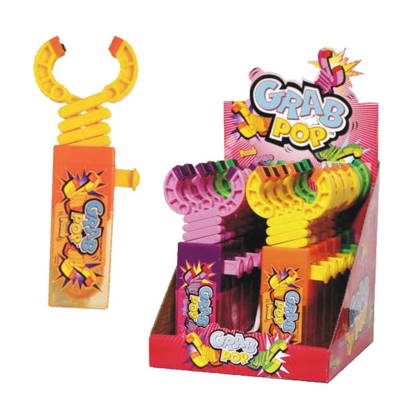 Kids will have fun with this fruit flavored candy that has an extendable grabbing arm Three delicious flavors peach grape and green apple These Grab A Pop Robot Arms are sold individually