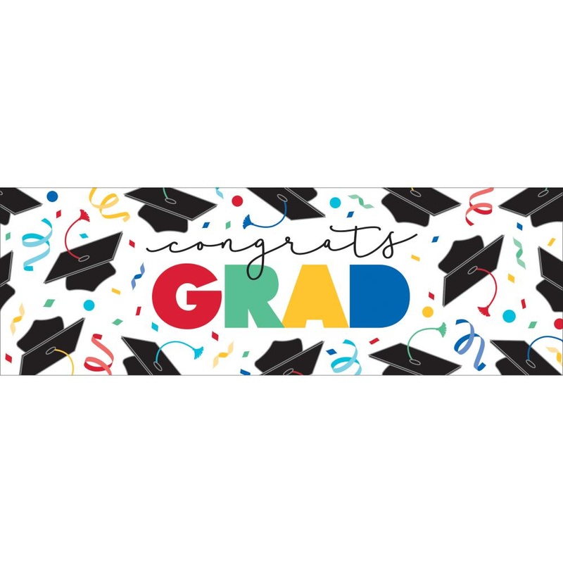 Details:Add a festive focal point to your graduation party with help from our Cap Toss Giant Graduation Party Banner. This banner measures 20″ x 60″ and features “congrats GRAD” text accented by confetti and graduation caps. Hang the banner above your party space to add a fun focal point and celebrate the graduate. Our Cap Toss Giant Graduation Party Banner is perfect for any high school or graduation party! Complete your graduation party setup with our coordinating graduation party supplies.