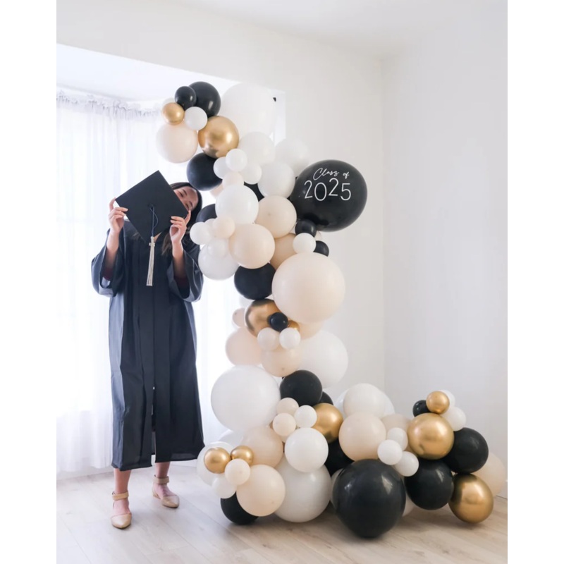 Important: 2-day preorder required. Indoor Use Only. Local delivery strongly recommended - this item will only fit in cargo vans or extra extra long SUVs.Congrats to 2025 Grads with a freestanding balloon garland! For a quick and easy celebration for grads