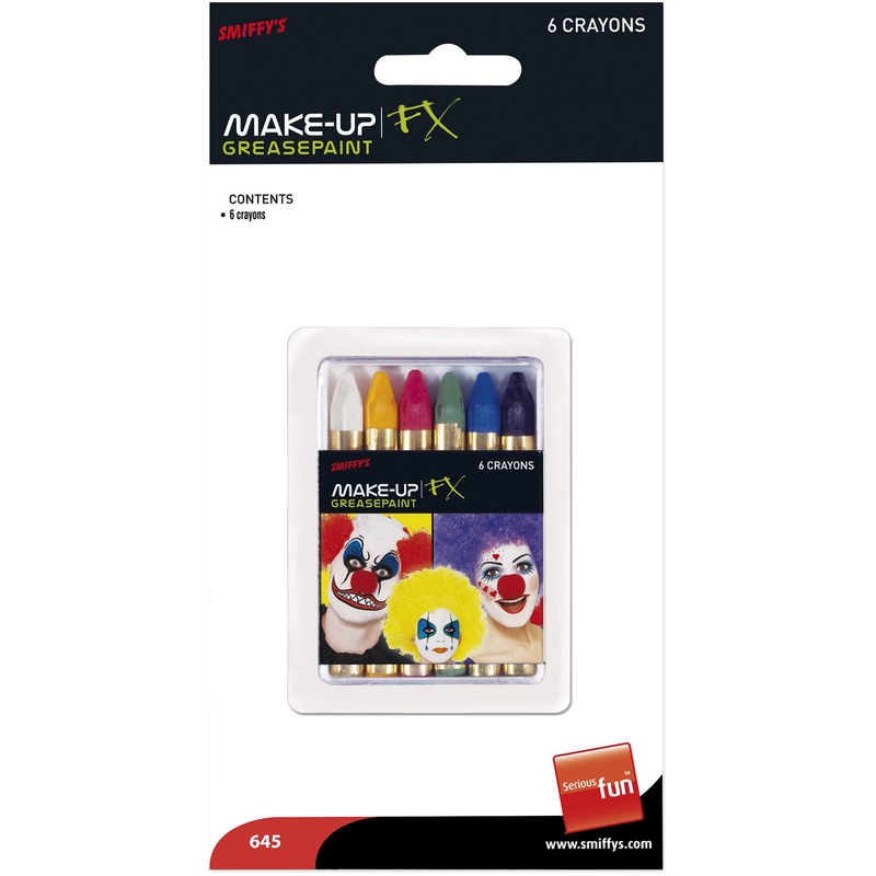 Pack of 6 colourful greasepaint crayons.