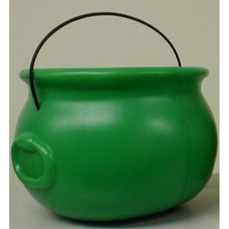 Fill the green cauldron with plastic or chocolate coins for guests to take home from your St Pattys party or decorate the party scene with this lucky pot for festive atmosphere. This green plastic cauldron with handle measures 8in and comes one per pack.
