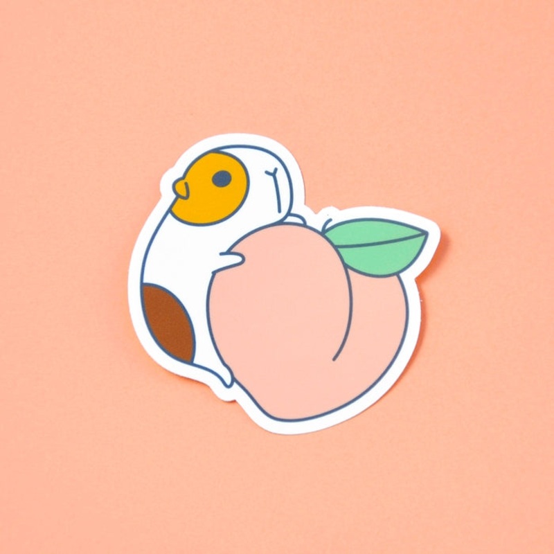 Bubu the guinea pig loves peaches. Thiscute waterproofvinyl sticker is perfect to decorate a hydroflaskwater bottle, laptop, or notebook. Weather Proof Vinyl Sticker Package Size:3" x 2.5"